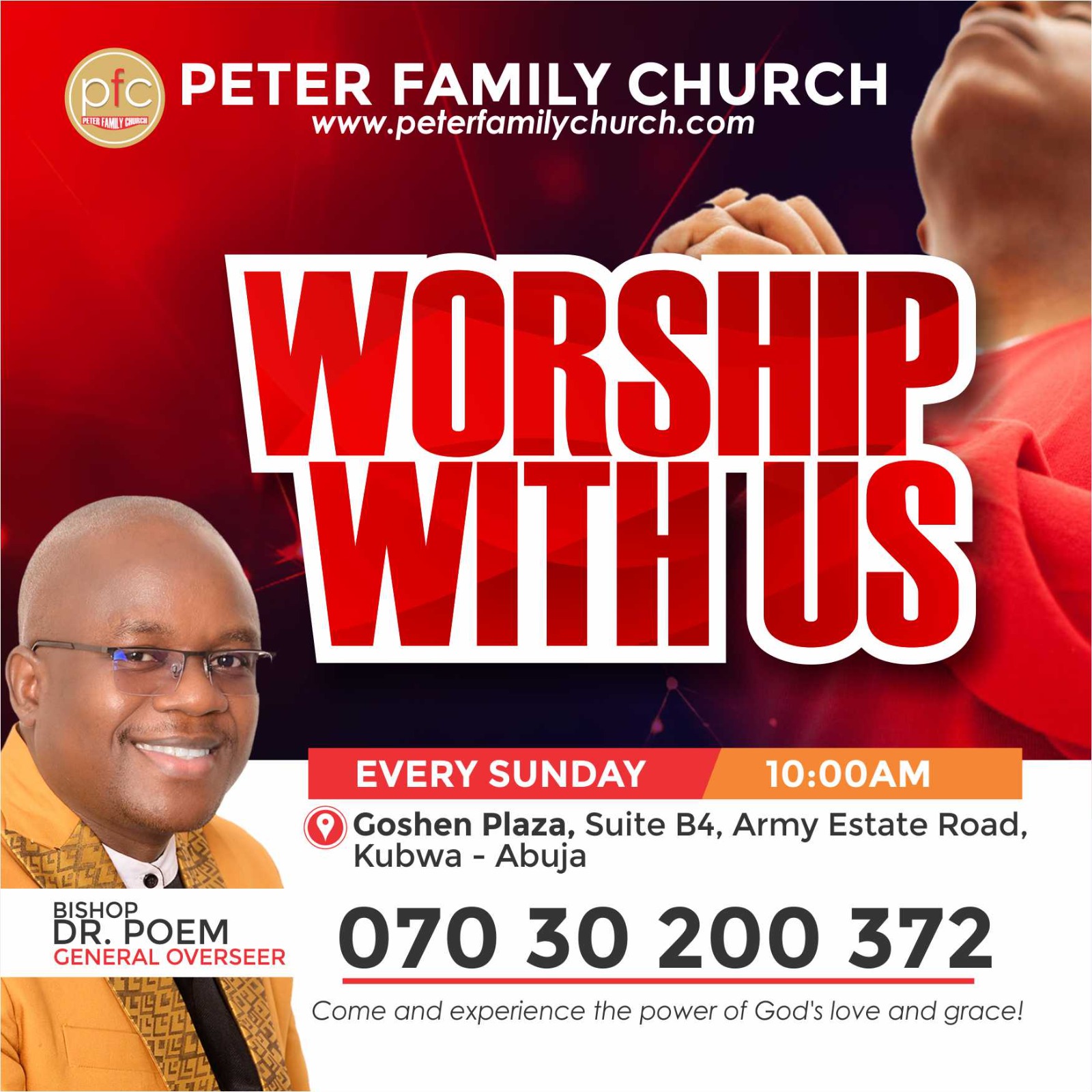 Date: Sunday, 1st, June, 2025 Time: 10:00 AM Venue: Peter Family Church, FCT-Abuja.