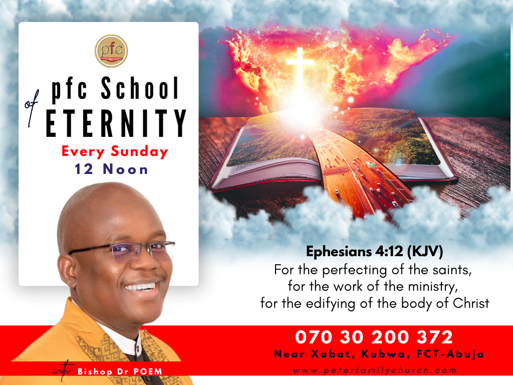 Are you ready to deepen your walk with God, discover your calling, and be equipped for impactful ministry? The Peter Family Church School of Eternity is a transformative training ground for believers who desire to grow in biblical knowledge, spiritual maturity, and practical service. Whether you’re called to lead, teach, serve, or evangelize, this is your moment to be empowered.