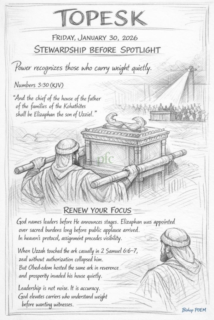 God names leaders before He announces stages. Elizaphan was appointed over sacred burdens long before public applause arrived. In heaven’s protocol, assignment precedes visibility.