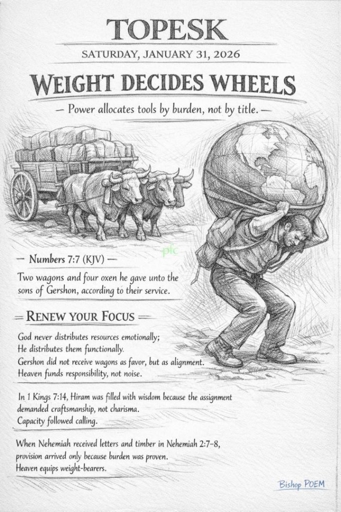 God never distributes resources emotionally; He distributes them functionally. Gershon did not receive wagons as favor, but as alignment. Heaven funds responsibility, not noise.