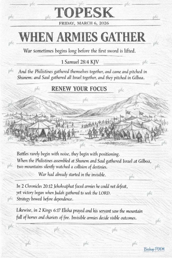 Battles rarely begin with noise; they begin with positioning. When the Philistines assembled at Shunem and Saul gathered Israel at Gilboa, two mountains silently watched a collision of destinies. War had already started in the invisible.